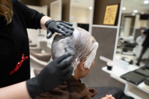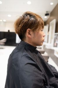 髪色は下地の色と髪のコンディションをチェックしながら微調整して染めます。