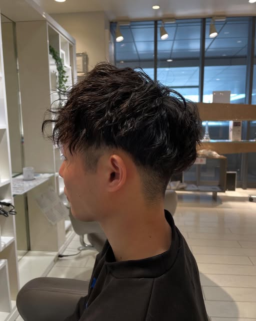 柔らかなウェーブのニュアンスが、いつもと違った印象を与えるツーブロック×ツイストスパイラルパーマ