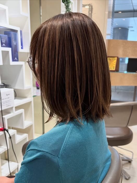 柔らかなグレージュカラーをベースに、繊細な「ぼかしハイライト」をプラスしたロブスタイル✂︎