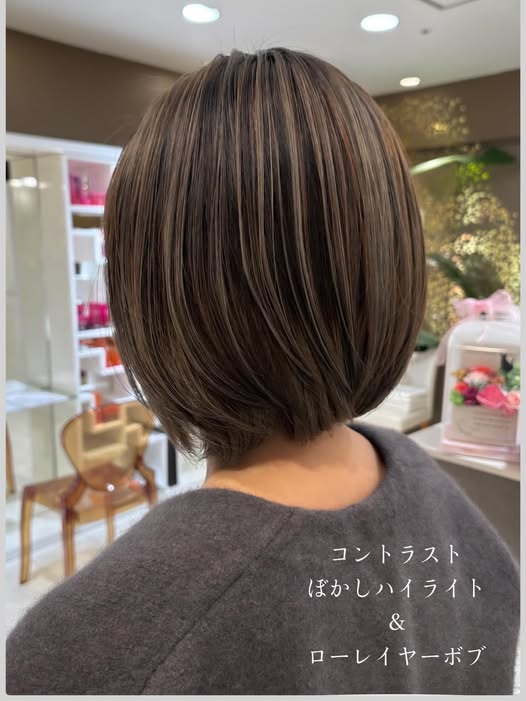 白髪ぼかしハイライト × ローレイヤーボブ