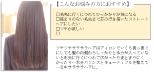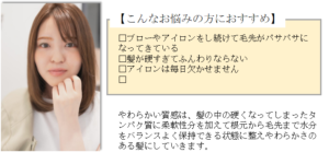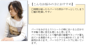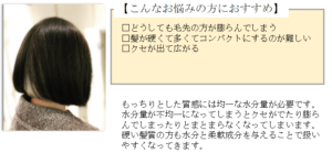 パーマスタイルで広がりやパサつきの気になるコンディション向き