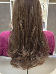 - レイヤーで重さを残しながら、毛先にやわらかな動きをプラス。乾燥や広がりを抑え、艶と立体感を両立した大人のロングスタイル。作り込みすぎない自然さが、年齢を重ねた髪を美しく引き立てます。