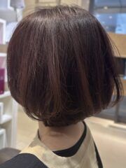 | メニュー | ショートレイヤーボブ&ピンクベージュオイルカラー |