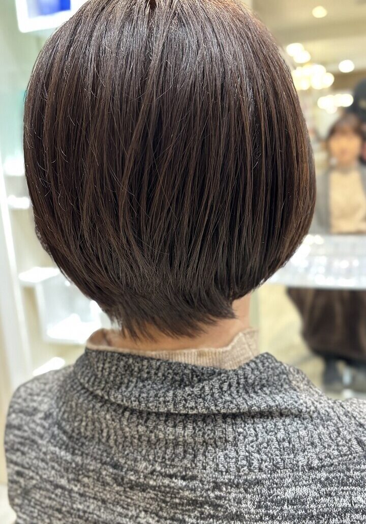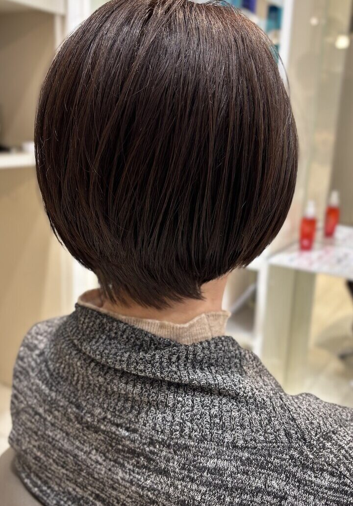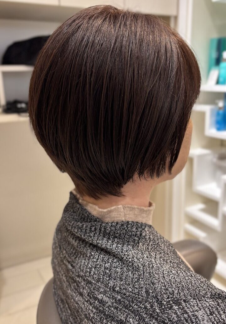 首元すっきり、後頭部は自然な丸みの大人ショートボブ。髪質や骨格、日常の扱いやすさまで考え抜き、乾かすだけで形になる♪作り込みすぎない上質さで、毎日が楽になるスタイルです。「今の自分がいちばん好き」と思えるヘアを大塚がご提案します。